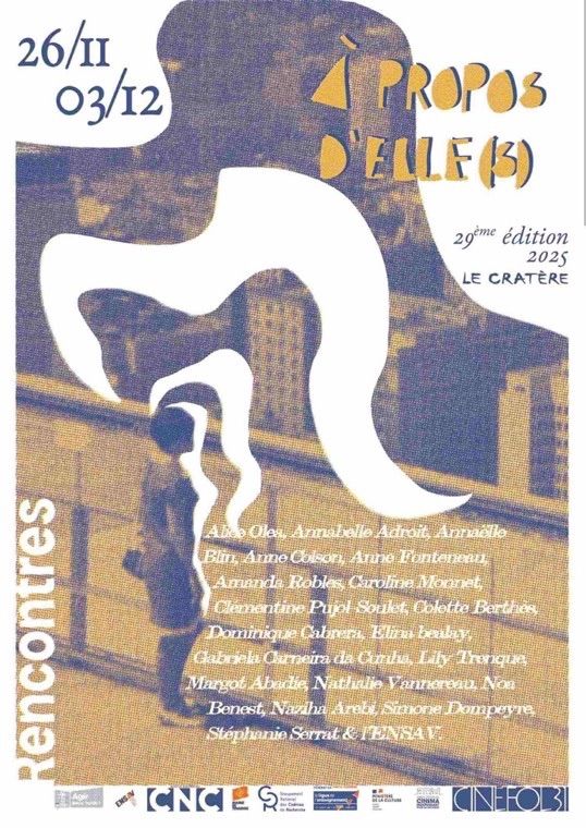 Les services civiques de CINEFOL 31 (Annaëlle Blin, Noa Benest, Bayron Casas, Lily Trenque), les étudiantes et étudiants (Marie Lacombe, Myrtille Sperry, Oriane Espinosa, Seren Ozer, Eva Grison) et les enseignantes (Maud Cazaux, Isabelle Labrouillère, Amanda Robles) de l'Ensav et du parcours Recherche et Expérimentation, les diverses associations partenaires (Ciné-Palestine Toulouse Occitanie, Ciné Palabres, Traverse vidéo, La Cimade, l'Association Franco Hongroise Midi-Pyrénées, Le Club Soroptimist Toulouse, le Théâtre Garonne, la Maison de l’architecture Occitanie – Pyrénées (MAOP), Traverse Vidéo), les intervenantes et intervenants (Isabelle Labrouillère, Emmanuel Cano, Annabelle Adroit et Clémentine Pujol-Soulet, Simone Dompeyre, Colette Berthès, Stéphanie Serrat, Gabriela Carneiro) ainsi que les cinéastes (Anne Colson, Dominique Cabrera, Caroline Monnet, Margot Abadie, Alice Olea, Amanda Robles, Elina Bealay, Anne Fonteneau, Nathalie Vannereau) seront présentes et présents lors de ces Rencontres A propos d'Elle(s). Merci à elles toutes et bonnes Rencontres.