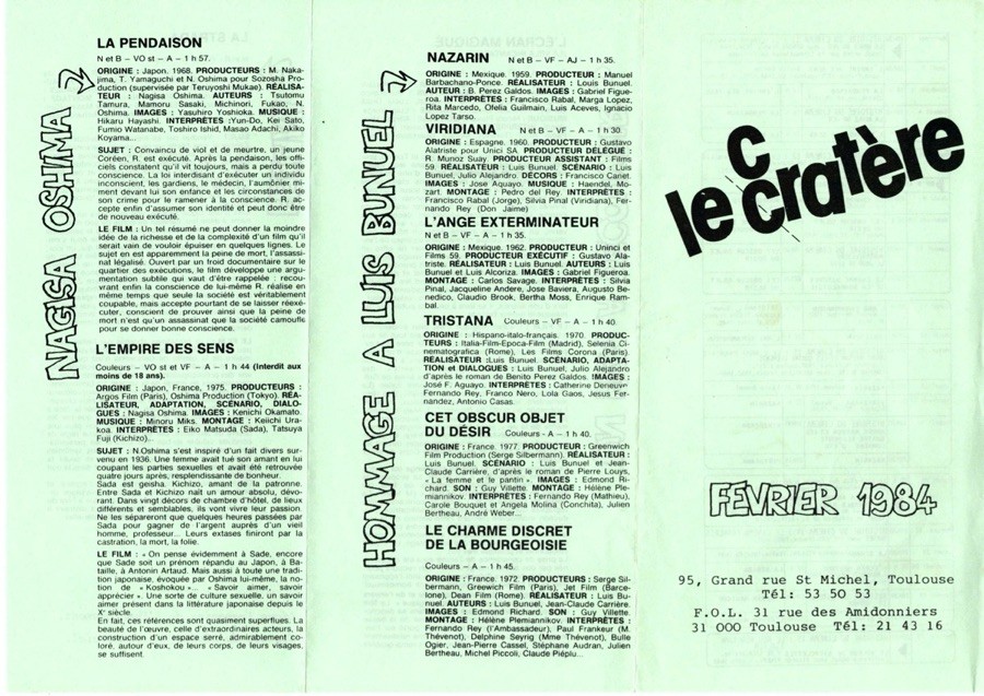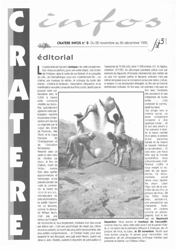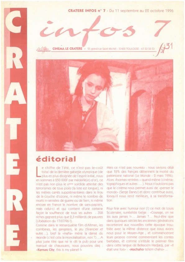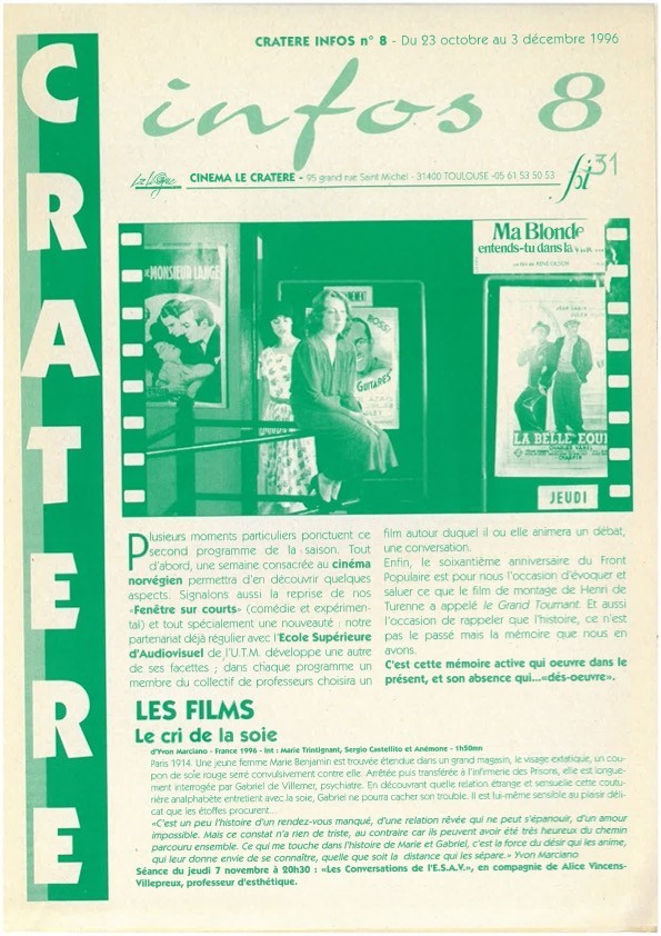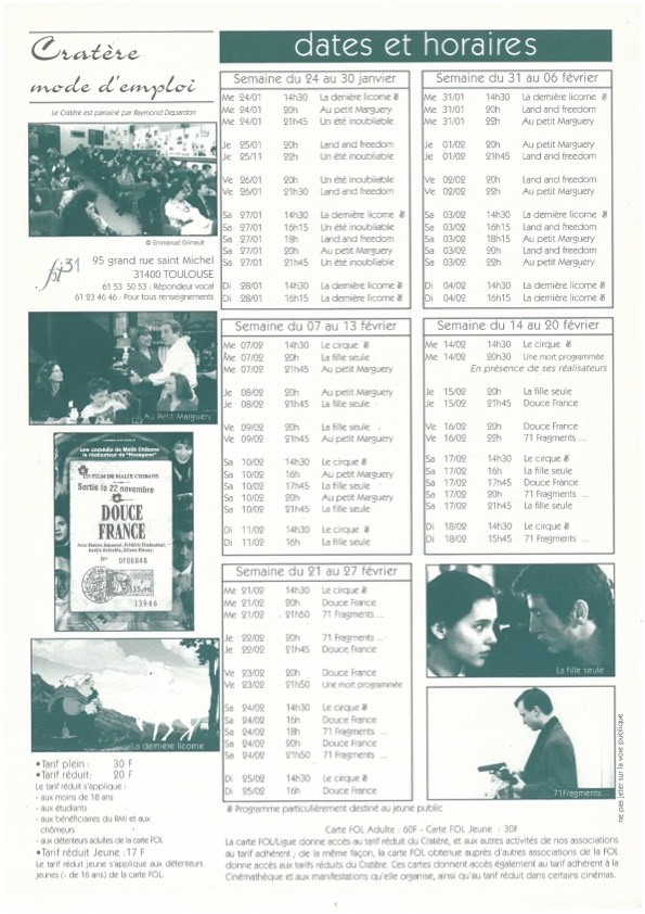 Les documents présentés ci-dessous ont été conservés par les équipes successives du Cratère au sein de CINEFOL 31 ainsi que par les bénévoles. Merci à toutes et tous.