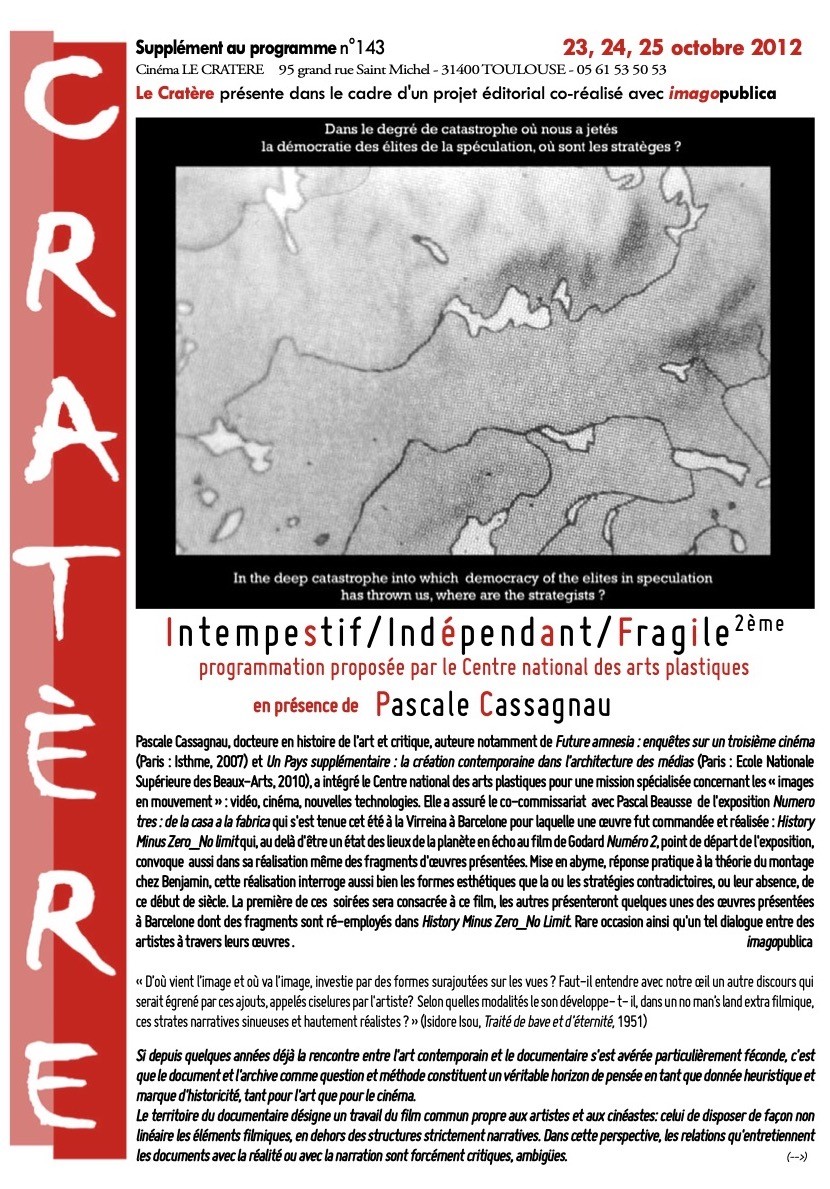 Ce temps de chien dans lequel le frêle esquif qu’est le Cratère est toujours embarqué n’empêche pas la lisibilité de sa route, la générosité de sa présence et la diversité de ses propositions, la singularité de sa destination cinématographique à la fois poétique, politique et esthétique.